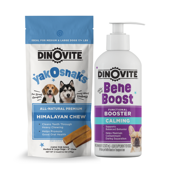 Sometimes our pets need help coping with external stresses like separation anxiety, fireworks, thunderstorms, or traveling, that’s why we bundled Beneboost Calming and YakOSnaks. This bundle promotes relaxation, provides entertainment and can reduce anxiety.