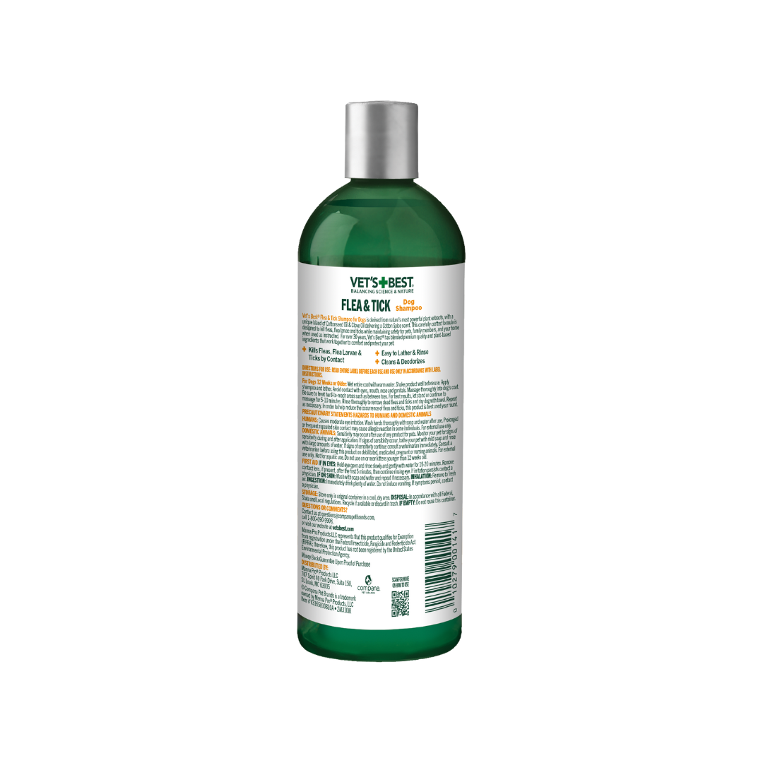 Vet’s Best Flea and Tick Advanced Strength Dog Shampoo uses nature's most powerful plant extracts with a unique blend of Peppermint Oil and Eugenol (from Clove plants) which was carefully formulated to kill fleas and ticks. For Dogs 12 Weeks or Older. Can be used indoors or outdoors. For over 30 years, Vet’s Best has blended plant-based ingredients that work together to comfort and protect your pet.