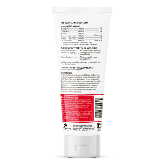 I have been ordering this product for a few years now. Started with the powder, but my dog didn’t seem to care for it, so I tried the squeezable and she licks the spoon!