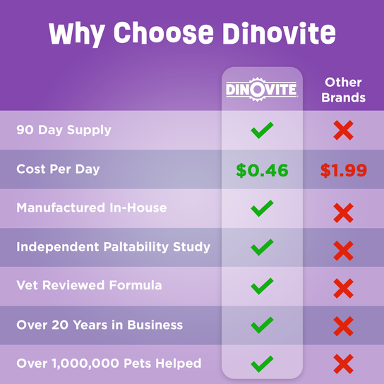 70% of your cat's immune system is based in their gut. Bacteria within the digestive tract can significantly influence your cat's health. Dinovite's unique formula contains prebiotics, probiotics, omega fatty acids, taurine, and other important nutrients that help promote a healthy balance of good bacteria in your cat's gut.