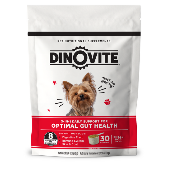 Dinovite Powder packs probiotics, prebiotics, omega fatty acids, and other nutrients in a single daily scoop to support a healthy gut, healthy skin & coat, and overall immune support.